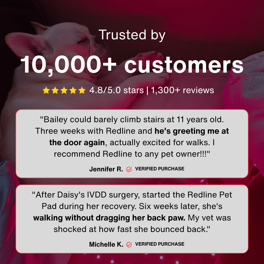 The Redline Pet Pad brings veterinary-clinic power directly to your home with 700 high-density LEDs delivering therapeutic-grade irradiance at over 90mW/cm². It features a dual-wavelength system that combines 660nm red light for surface healing with 850nm near-infrared for deep tissue penetration, the same wavelengths used in over 1,000+ clinical studies.
